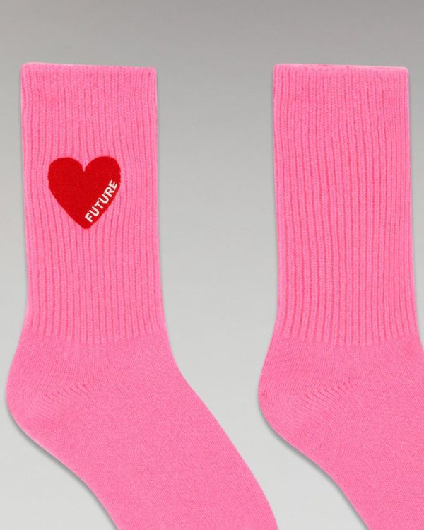 Décliné dans un colorama inédit, ces chaussettes mi-hautes viennent rehausser votre silhouette futuriste avec éclat. Confectionnées en cachemire 4 fils, un cœur brodé « Future » se dévoile, vous invitant à rejoindre le Club. Côtelées et ajustées aux chevilles, elles se portent sans modération et autorisent tous les styles.