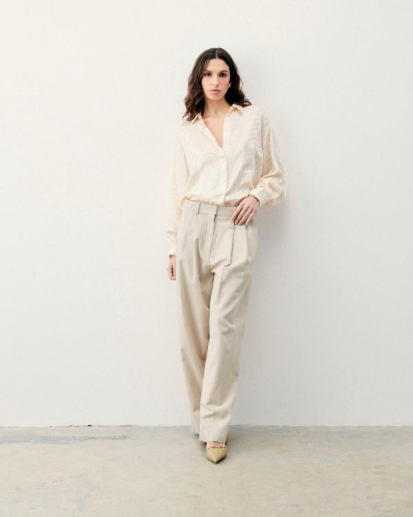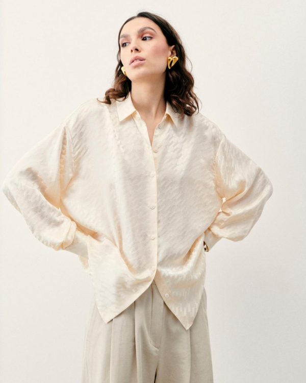 Embrassez l’élégance cosmique avec cette chemise confectionnée en satin de soie brillant et soyeux. Ornée d’un jacquard, elle dévoile un col chemise, des manches longues, une fermeture et des poignets boutonnés pour une silhouette structurée en toute fluidité. À porter de jour comme de nuit, elle se mixe à un pantalon de tailleur ample ou une jupe fluide.