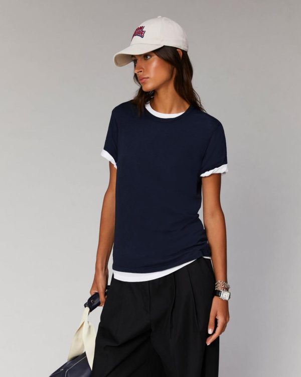 Chemises, T-shirts & Tops | Femme FROM FUTURE T-Shirt Col Rond Basique Navy