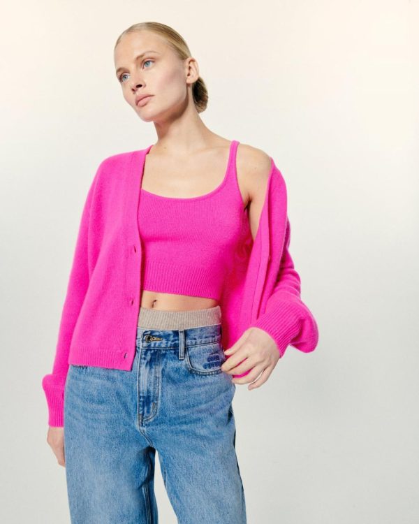 Un essentiel du vestiaire féminin : ce top brassière, confectionné en cachemire 4 fils, mêle confort et douceur. À porter à même la peau, il dévoile des bretelles fines, un col rond et des bords côtelés pour une silhouette ajustée. Complétez votre look futuriste avec une jupe en maille ou un jean ample.