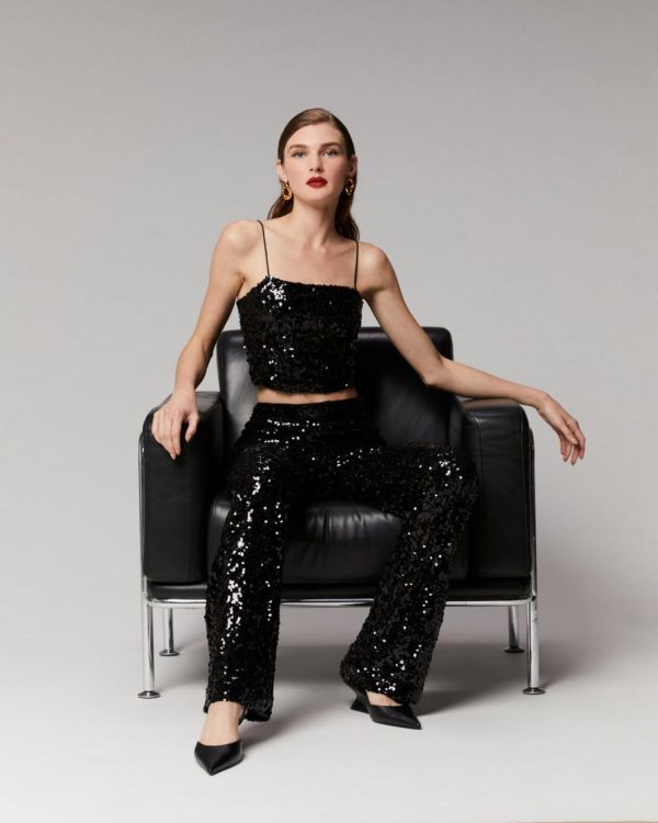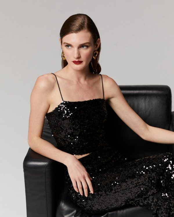 Alliant sophistication et audace, ce top court et ajusté révèle une silhouette futuriste éclatante. Avec de fines bretelles, il dévoile un encolure droit et se pare de sequins en all-over, vous propulsant vers l’infini de l’élégance interstellaire. À porter de jour comme de nuit, osez le total look chic en misant sur le pantalon coordonné et ponctuez le tout avec des bijoux et une paire d’escarpins.