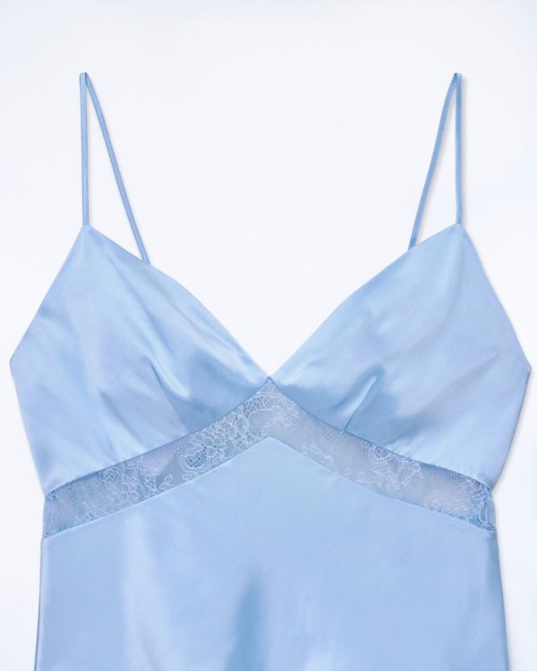 Incarnant l’élégance cosmique, ce top court et ajusté est confectionné en satin de soie léger et soyeux. Muni d’un décolleté en V et de bretelles fines, il se pare de bandes de dentelle. Jouez le total look chic en l’associant à une jupe longue fluide et une paire d’escarpins.
