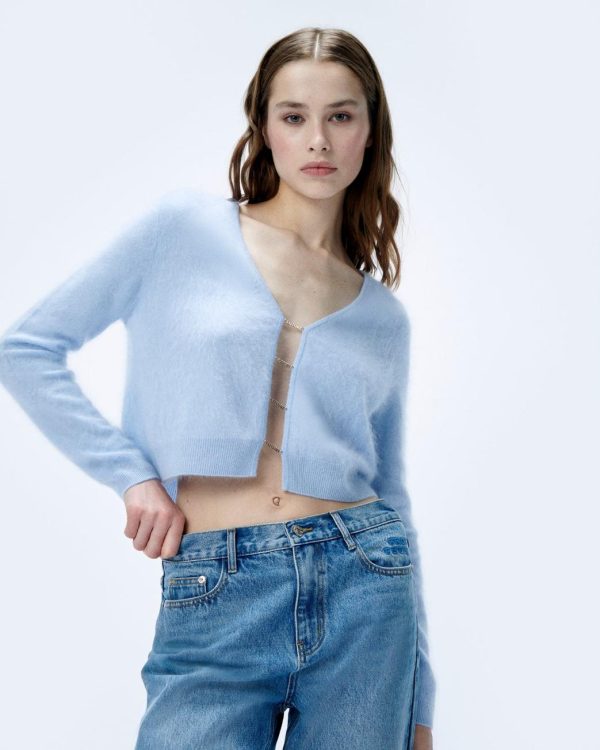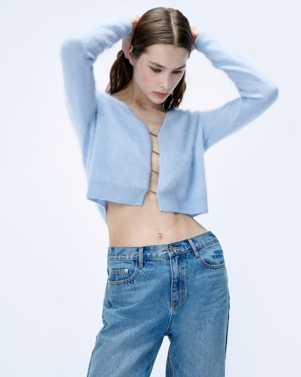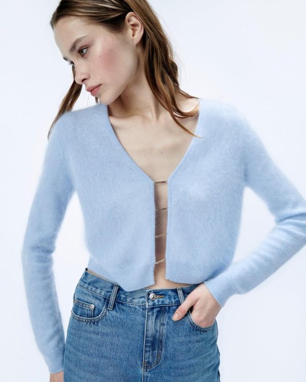 Misez sur allure de cosmic girl dans ce pull court confectionné en cachemire 2 fils muni de manches longues. Son décolleté plongeant dévoile une fermeture à plaques FROM FUTURE.