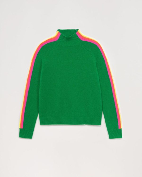 Emportez un petit bout d’arc en ciel partout avec vous avec ce pull à col montant. Cachemire 2 fils ultra confortable et aéré, pointe de fun et coupe indémodable : Quel style ! Quel confort ! Quelle dégaine !