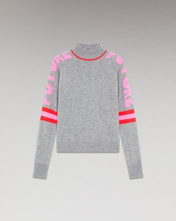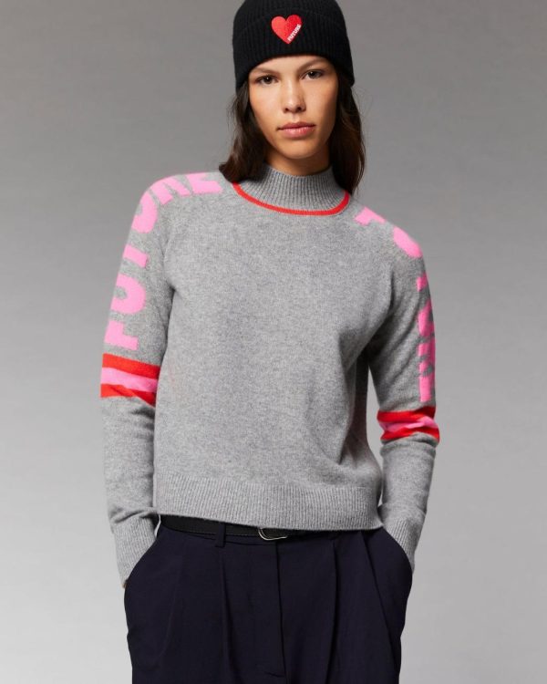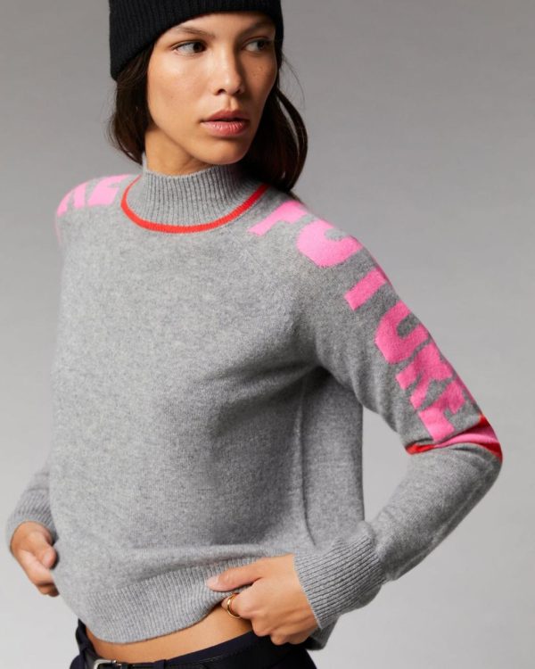 Beaucoup d’audace pour ce pull court et twisté de détails futuristes. Confectionné en cachemire léger 2 fils, il dévoile un col montant ponctué d’un liseré contrasté. Des bandes bicolores et une signature « FUTURE » s’invitent le long des manches. Résolument élégant, complétez votre look avec un pantalon ample marqué d’une ceinture, des sneakers et un bonnet.