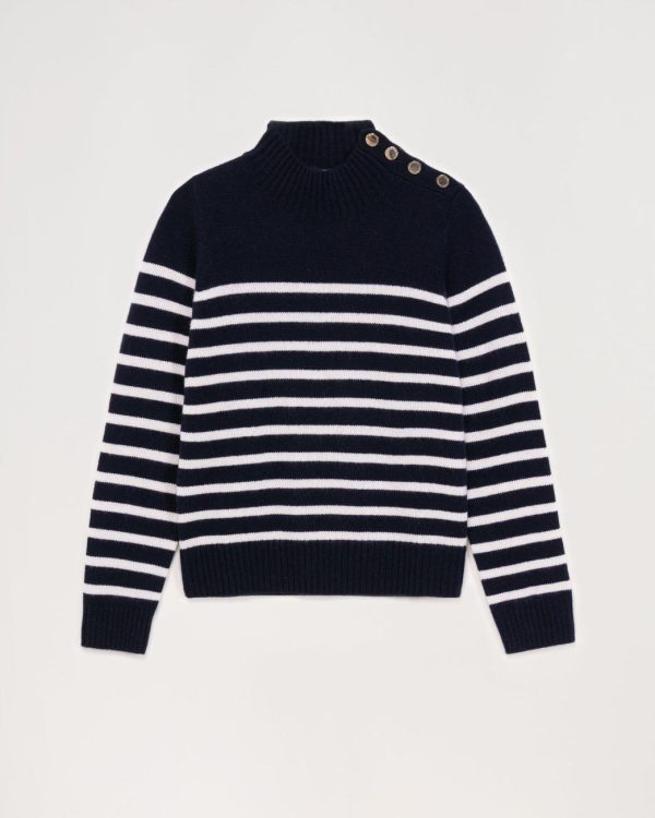 From Future revisite la marinière avec des boutons dorés sur l’épaule. Légère et confortable, vous allez la porter tout l’hiver !