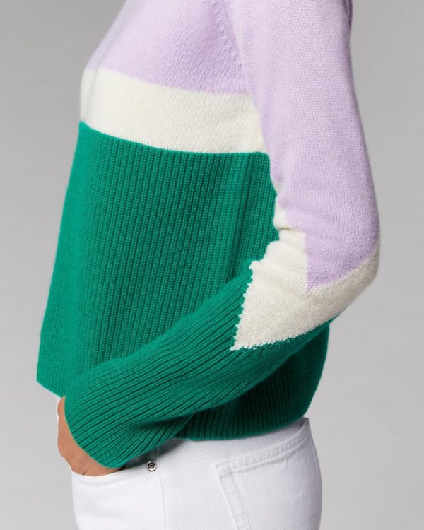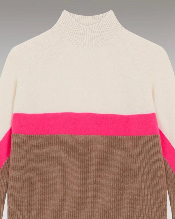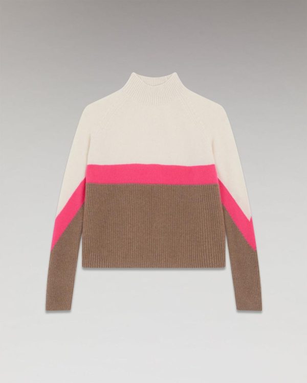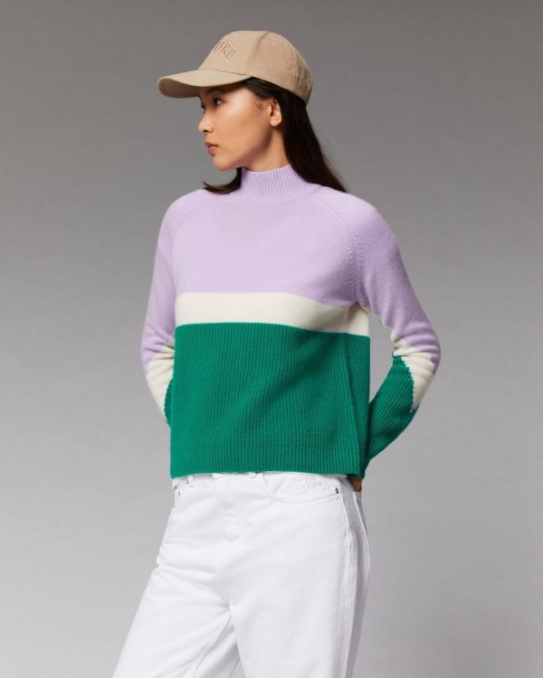Confectionné en cachemire 4 fils, ce pull court est muni d’un col montant, de manches longues et de bords côtelés. Avec son allure avant-gardiste, il révèle un jeu de contrastes tricolores pour transcender le temps et l’espace. Facile à mixer, optez pour un look chic et casual avec un pantalon droit, une casquette signature et des sneakers.