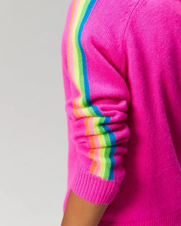 Laissez-vous emporter vers des horizons infinis avec ce pull court, muni d’un col rond et de bords côtelés. Infiniment doux, il adopte une maille en 100% cachemire 4 fils pour réchauffer votre silhouette avec style. Le détail audacieux ? Des bandes multicolores se dessinent le long des manches et annoncent un futur plus que radieux ! Casual et élégant, il s’associe à un t-shirt, un pantalon large et fluide et des sneakers.
