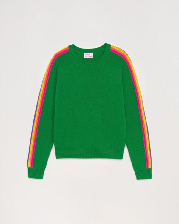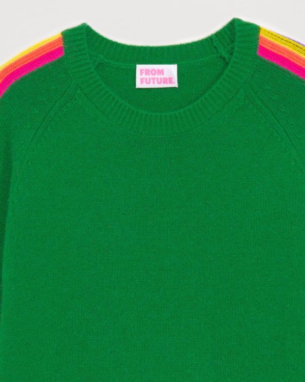 Cols Ronds Cachemire | Femme FROM FUTURE Pull Col Rond Bandes Tricolore Winter Green