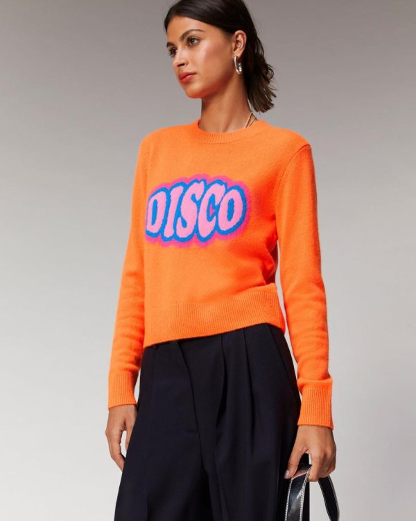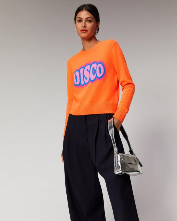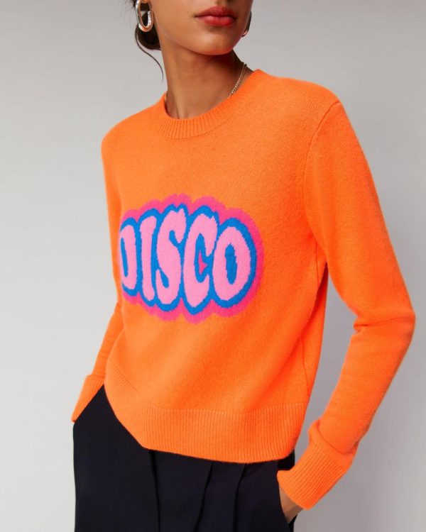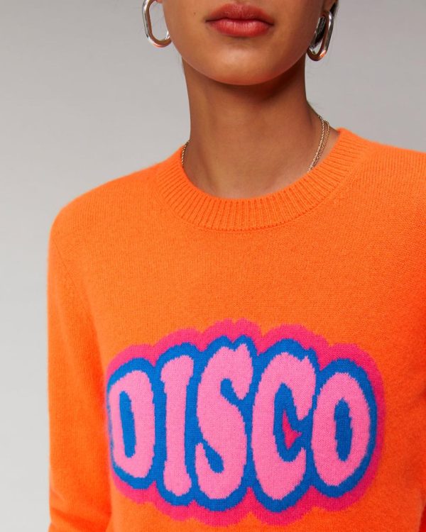 Plongez dans un univers cosmique vibrant avec ce pull en 100% cachemire aux couleurs vitaminées. Muni d’un col rond et de manches longues, il dévoile un message « Disco » en jacquard.