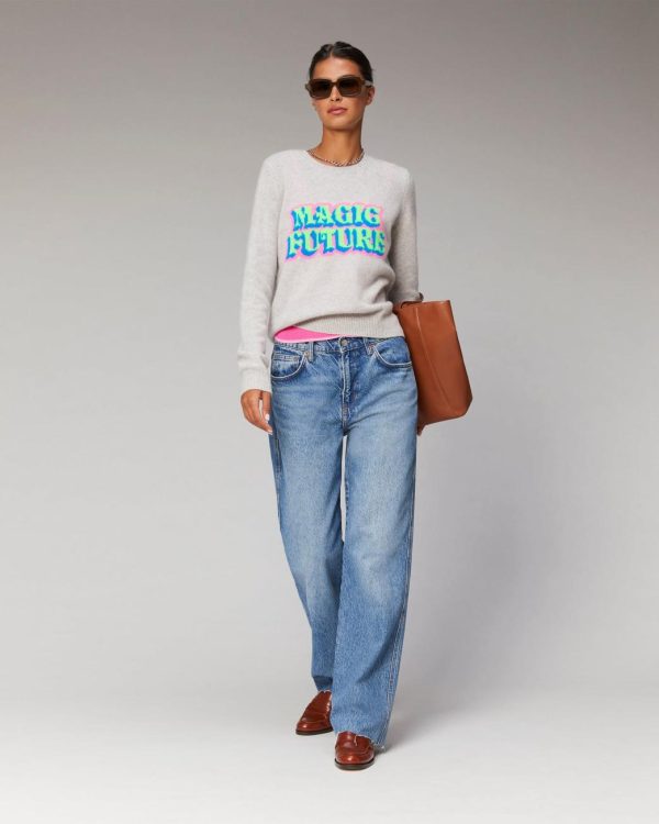 Confectionné en cachemire 2 fils, ce pull court vous transporte vers un futur étincelant de possibilités infinies. Muni d’un col rond, de manches longues et de bords côtelés, il affiche un message en jacquard « Magic Future » pour incarner une allure cosmique. À la fois chic et casual, il s’associe facilement à un jean décontracté, un sac et des lunettes de soleil.