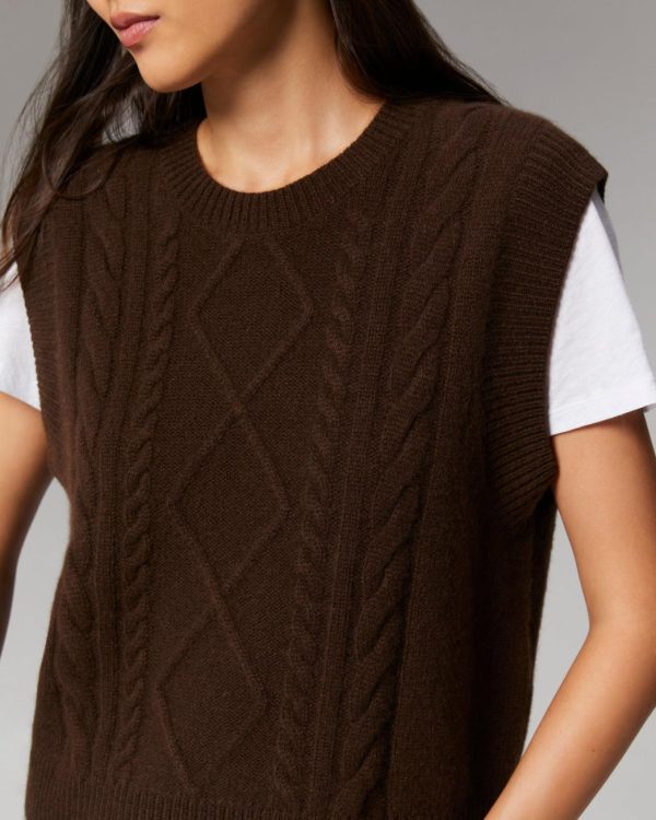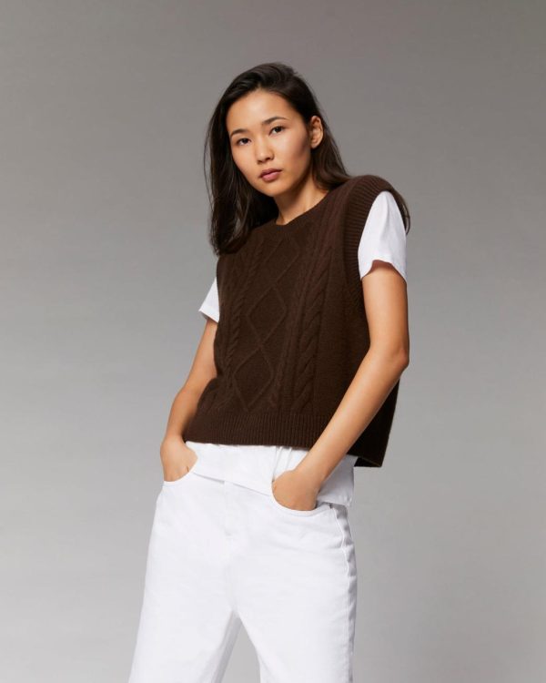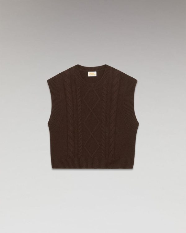 Confectionné en cachemire 6 fils, ce pull sans manches infiniment doux s’impose comme un incontournable de la saison. Court et oversize, il dévoile un col rond et un jeu de torsades qui capturent l’élégance intemporelle, vous invitant à embrasser un style qui transcende les époques. À porter seul ou sur une chemise, agrémentez votre silhouette d’un pantalon fluide pour une allure élégante et casual.