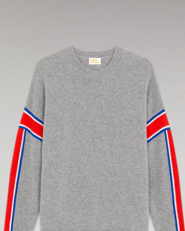Inspiration rétro et élégance futuriste pour ce pull oversize confectionné en cachemire 4 fils. Muni d’un col rond et de bords côtélés, des bandes tricolores contrastées se dessinent sur les manches longues pour une allure qui transcende l’espace. Mêlant confort, douceur et audace, il se mixe aisément à un jean ample ou un jogging casual.