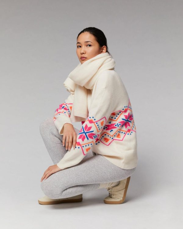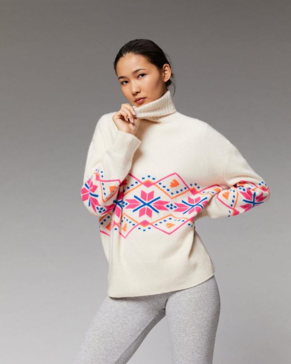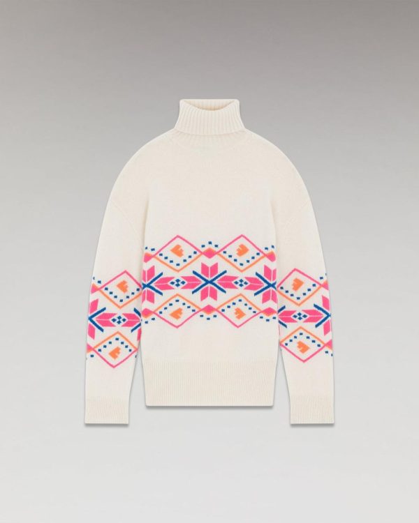 Enveloppez-vous de douceur avec ce pull oversize et confectionné en cachemire 4 fils. Muni d’un col roulé, de manches longues et bords côtelés, il dévoile des motifs norvégiens aux couleurs vibrantes pour réveiller votre silhouette futuriste. Mêlant confort et élégance, il s’associe aisément à un legging, des sneakers et une écharpe.
