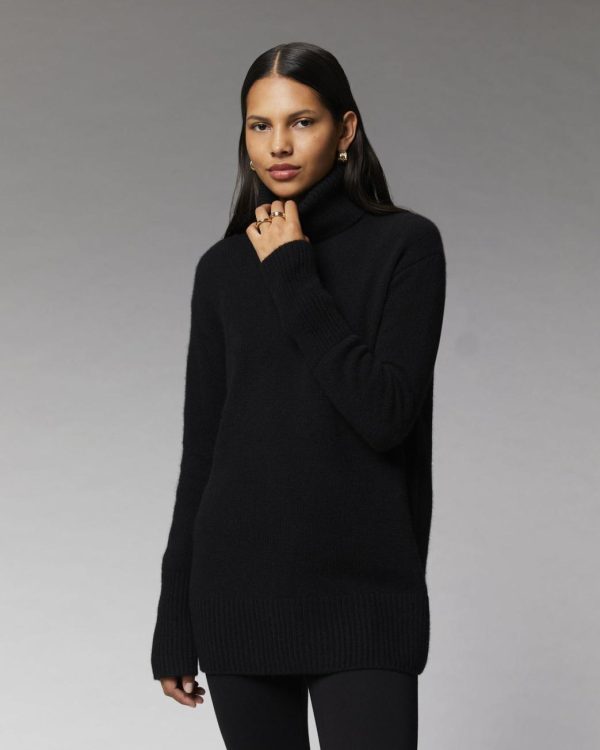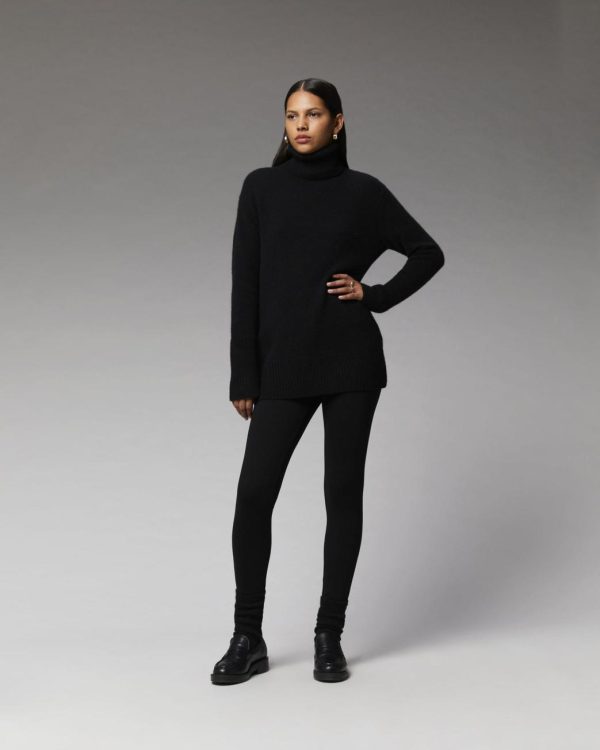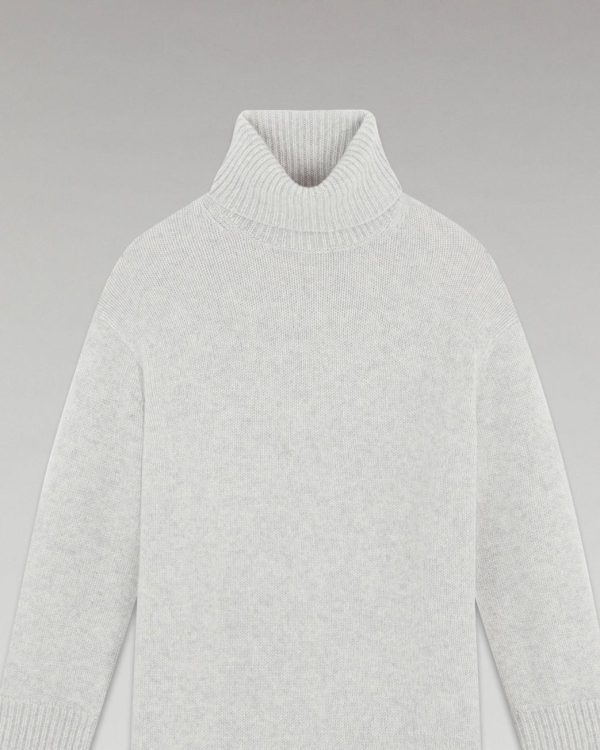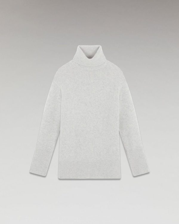 Confectionné en cachemire 6 fils, ce pull long et oversize incarne une élégance… spatiale. Muni d’un col roulé, de manches longues et de bords côtelés, il séduit par sa douceur céleste et ses lignes futuristes. À porter sans modération, complétez votre look chic et casual avec un pantalon et des bottines.