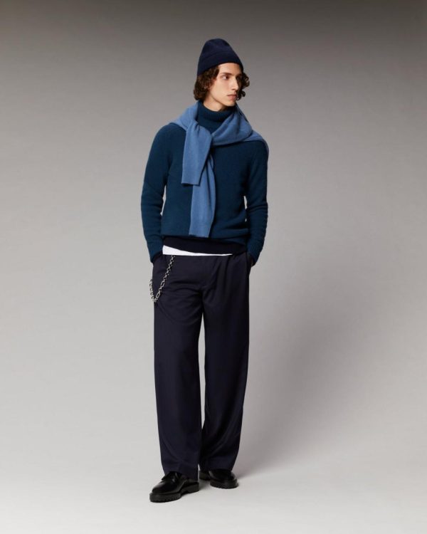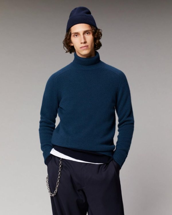 Confectionné en cachemire épais 4 fils, ce pull infiniment doux s’impose comme un incontournable du vestiaire masculin. Alliant élégance intemporelle et audace futuriste, il dévoile un col roulé, des bords côtelés et des manches longues marteau. À porter sans modération, complétez votre look casual avec un jean et une casquette.