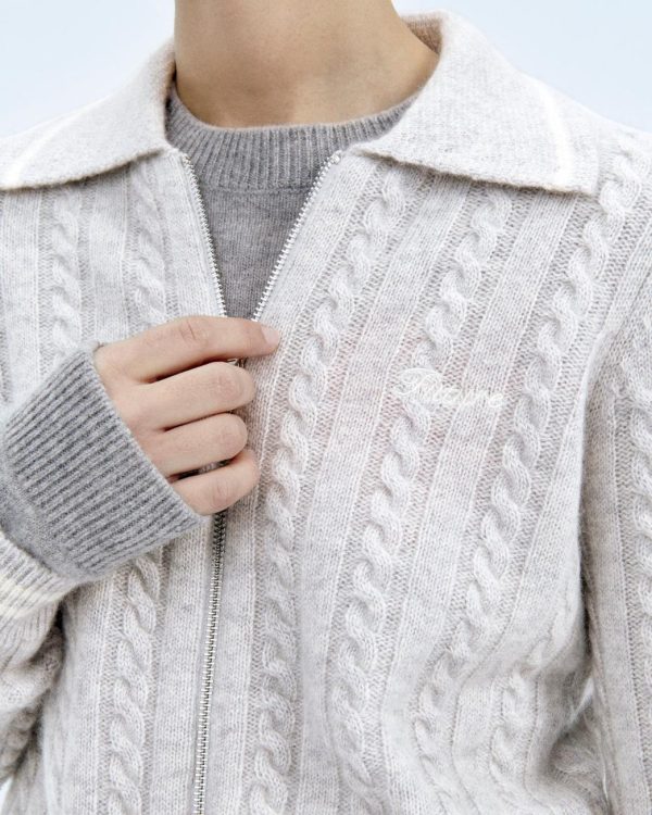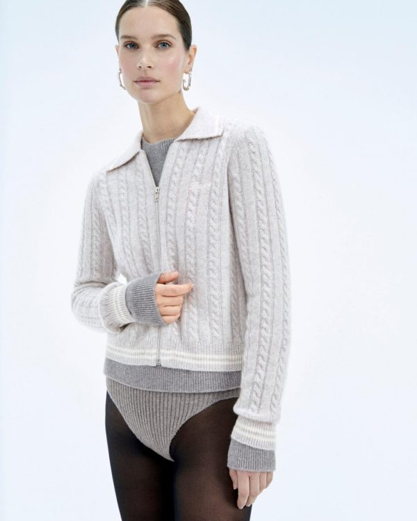 Confectionné en cachemire 4 fils, ce pull cardigan court réchauffe votre allure futuriste tout en douceur. Muni d’un col large et de manches longues, il affiche une fermeture zippée et des bords côtelés. Une signature brodée « Future » se dévoile à la poitrine, vous invitant à rejoindre le Club. Mixez-le à un jean casual ou à une jupe en maille.