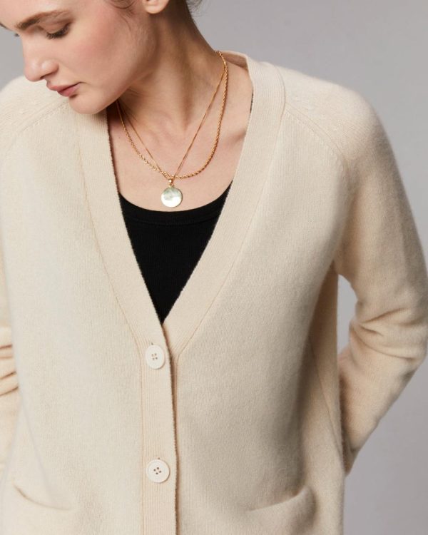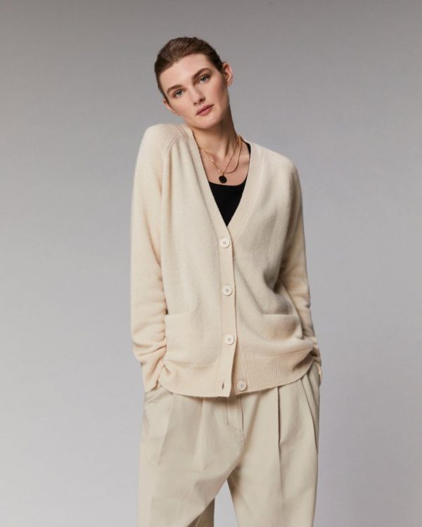 Un incontournable du vestiaire féminin venu tout droit du futur ! Décliné dans un colorama inédit, ce pull cardigan en maille douce 100% cachemire dévoile un col V et des manches longues avec une coupe oversize.