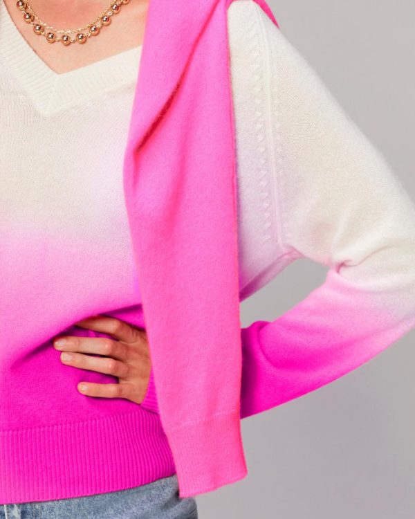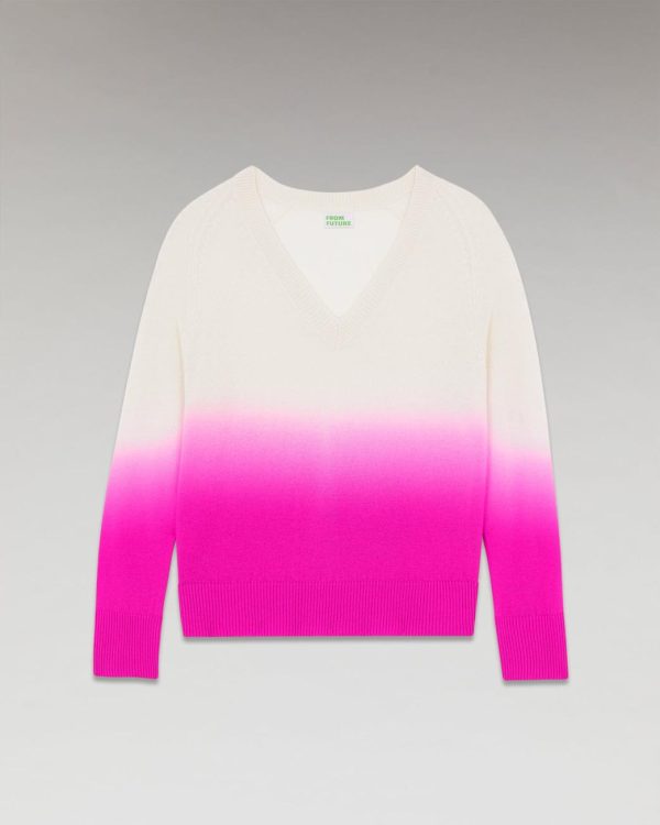 Laissez-vous emporter dans un voyage cosmique vers des horizons futuristes. Un dégradé dip dye se dévoile sur ce pull oversize en maille douce 100% cachemire, muni d’un col V et de manches longues.