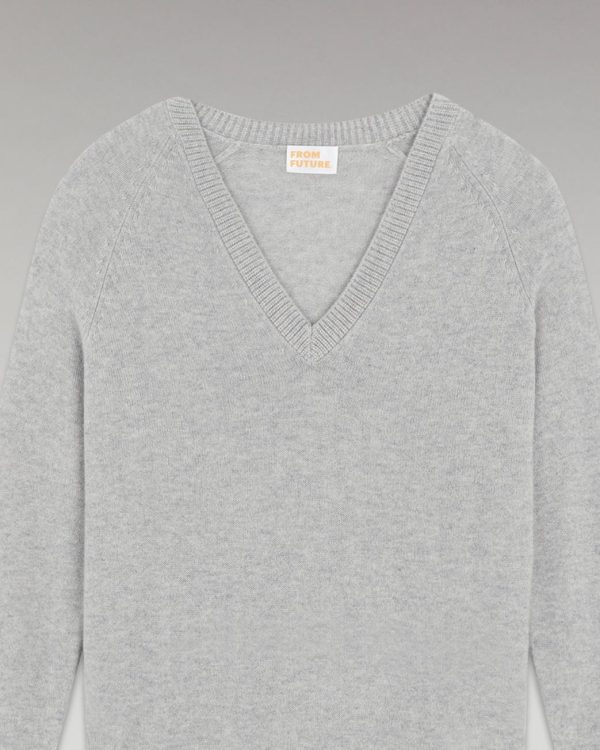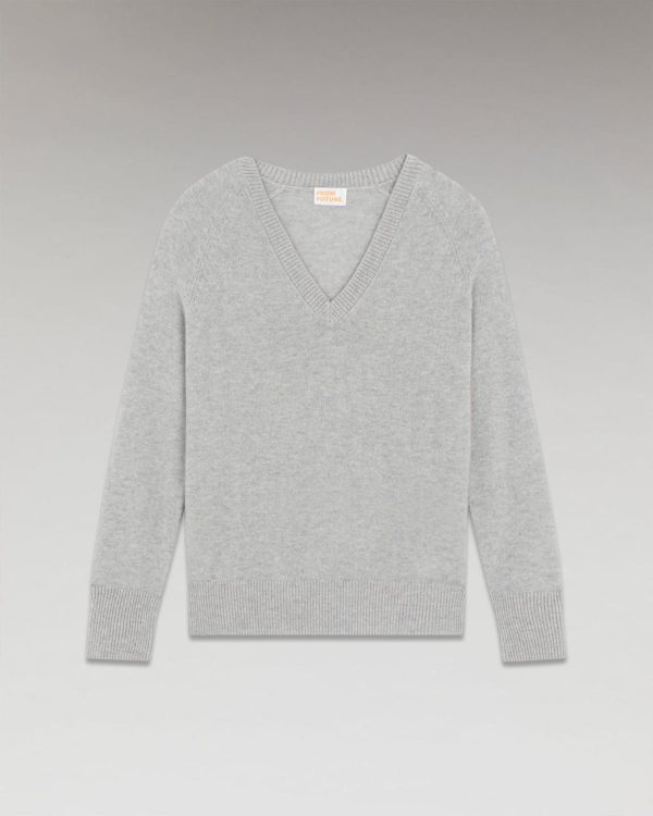 Cols V Cachemire | Femme FROM FUTURE Pull Col V Oversize Léger Gris Chiné Clair