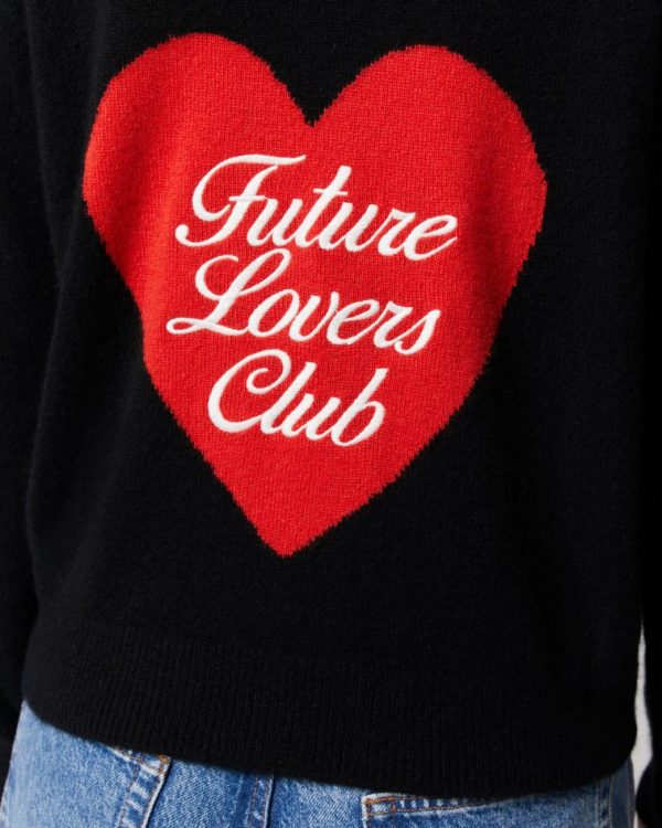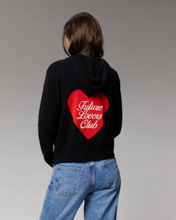 Rejoignez le Club avec ce pull hoodie court confectionné en cachemire 2 fils. Muni d’une capuche et de manches longues, il arbore fièrement un cœur orné d’une broderie « Future Lovers Club » au dos. Une véritable déclaration de style qui insuffle douceur et légèreté à votre silhouette cosmique. Élégant et casual, complétez votre look avec un jean large ou une jupe fluide.