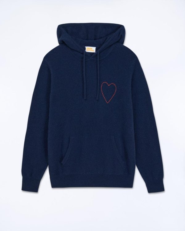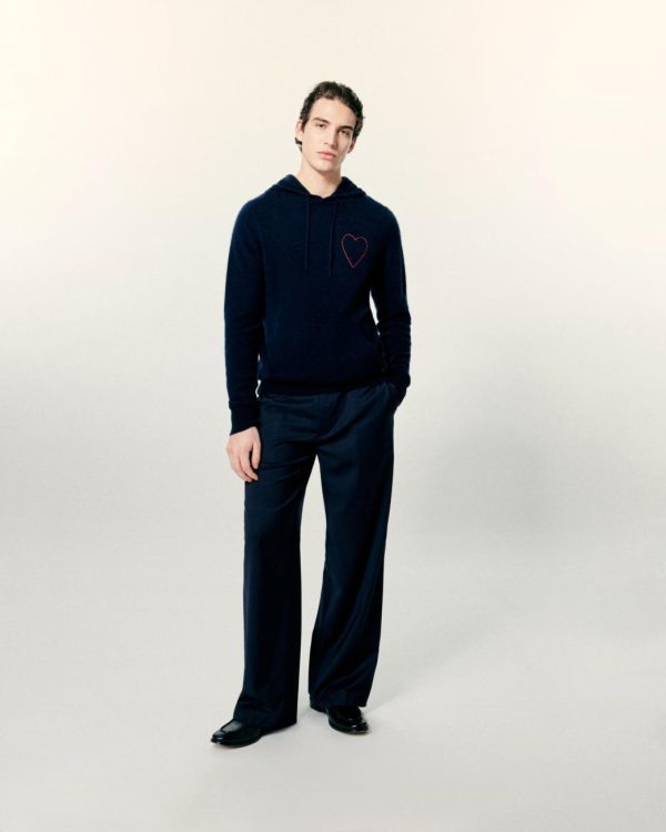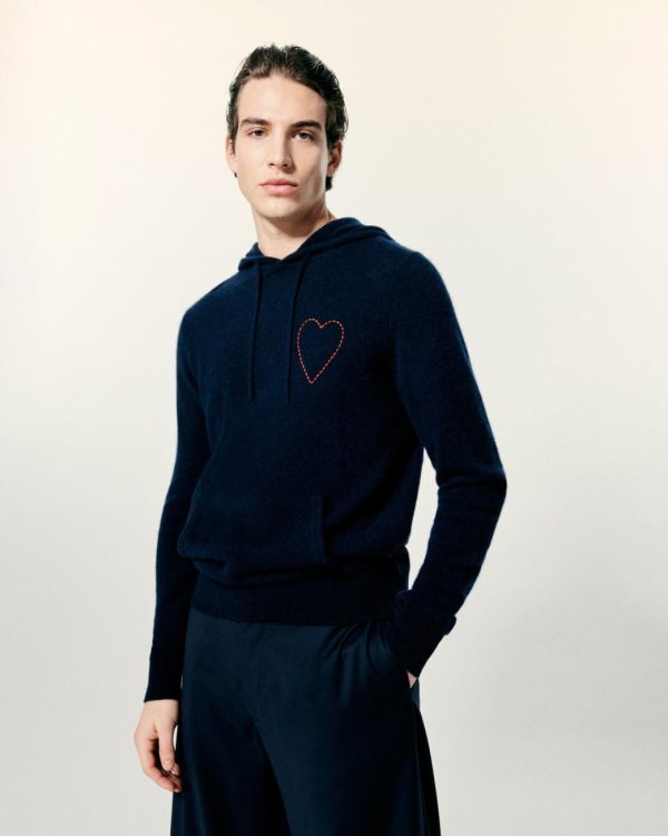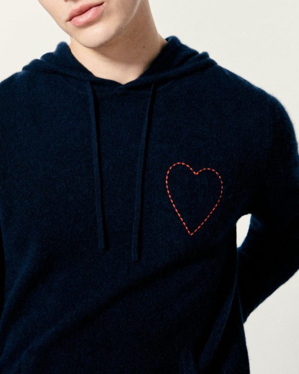 Confectionné en cachemire 2 fils, ce pull hoodie oversize révèle un cœur contrasté et brodé, une véritable déclaration cosmique. Muni d’une capuche à cordons et de manches longues, il dévoile une poche avant et des bords côtelés. Complétez votre look futuriste avec un jean droit ou un pantalon ample.
