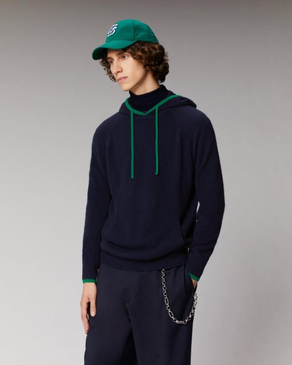 Hoodies | Homme FROM FUTURE Pull Hoodie Liserets Contrastes Léger Navy