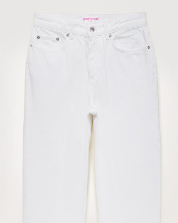 Rencontrez le straight parfait. Détail en broderie « From Future » semi-caché sur la poche gauche. Longueur 7/8ième. Jambes droites pour allonger la silhouette sans trop mouler. Un intemporel que vous porterez toute l’année.