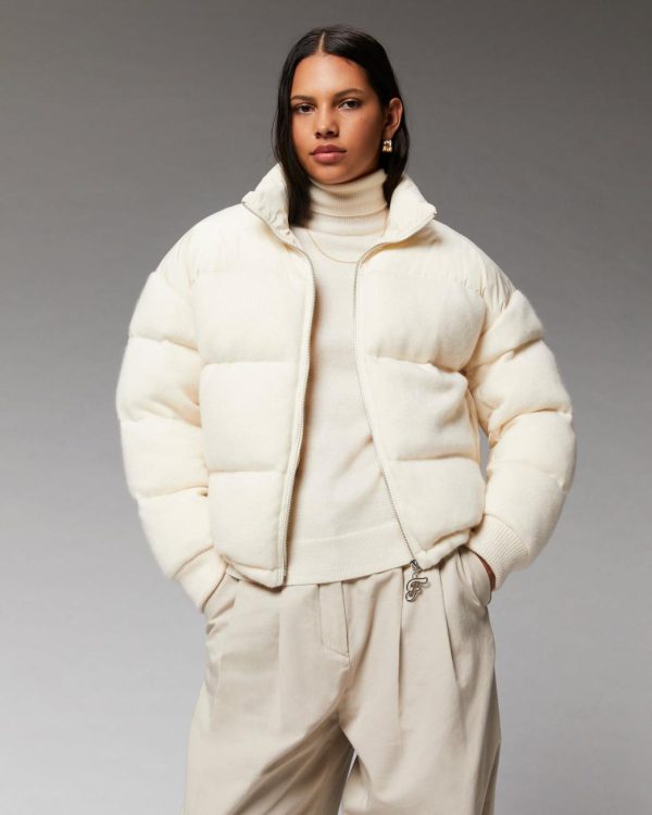 – Doudoune oversize bi-matière en cachemire 2 fils Femme