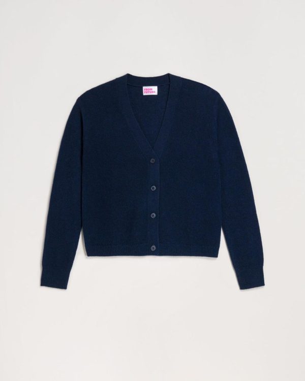 Cardigan à coupe courte. Boutons tons sur tons siglés et bouton de rappel. Le pull de mi-saison idéal à porter seul ou par dessus une jupe ou une robe en soie. Un bon basique du vestiaire FROM FUTURE, disponible dans 13 couleurs. Le plus léger de nos cachemires, le plus étudié aussi : 2 fils tricotés en déjaugé pour une maille aérienne et moelleuse, confortable quelque soit la saison.