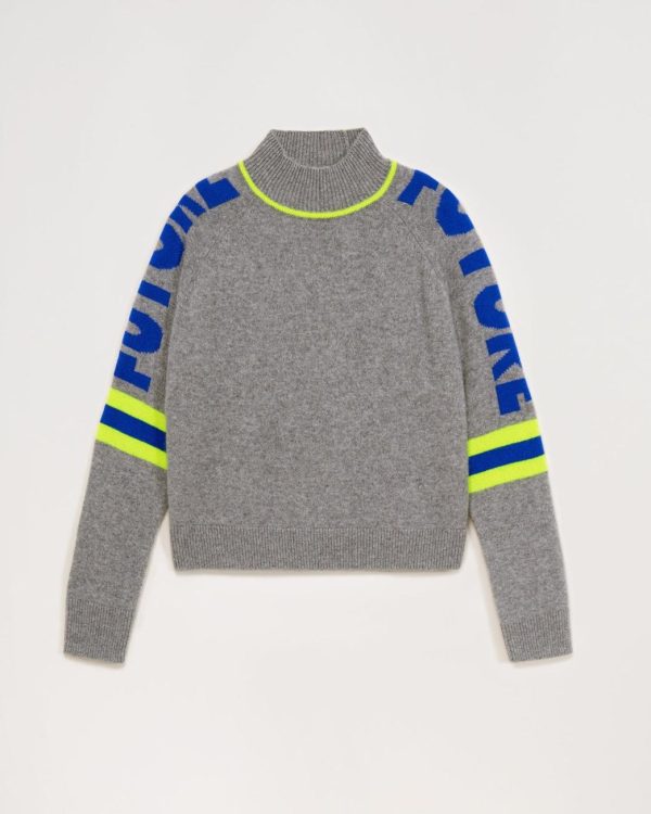Pull à col montant à l’allure futuriste. Maille de cachemire 2 fils fine, chaude et aérée. Juste parfait. Jeux de volumes graphiques et pointe de néon : pas de doute, l’avenir s’annonce ultra mode.