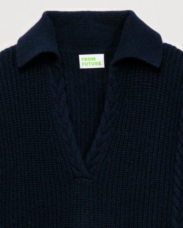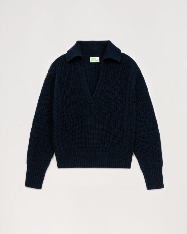 Pull en cachemire 6 fils, maille torsadée ultra chic. Jusque-là c’est assez basique. Mais observez la coupe très « mode » de ce petit bijoux tricoté : col polo, longueur légèrement croppée et manche oversize. Vous allez craquer ?