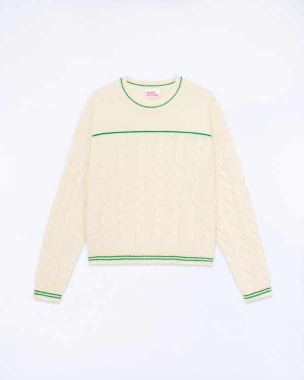 Vestiaire futuriste à l’horizon avec ce pull court et oversize, confectionné en cachemire 4 fils. Orné d’une broderie signature « Future » et de liserés torsadés à la poitrine, il est muni d’un col rond, de bords cotelés et de manches longues. Associez-le aisément à votre denim préféré.