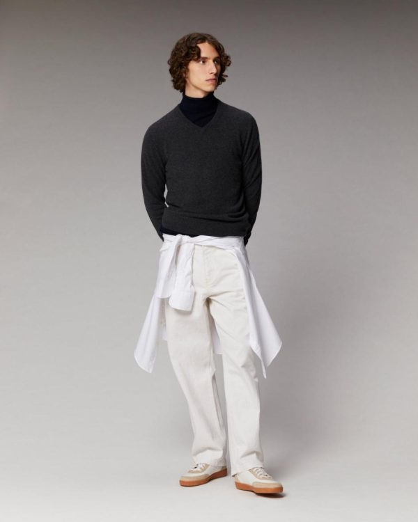 Un basique à porter sans modération : ce pull adopte une maille infiniment douce confectionnée en cachemire 2 fils. Muni de manches longues et de bords côtelés, il dévoile un col V et confère une allure empreinte d’élégance. Décliné dans des teintes cosmiques, révélez votre style futuriste ! À porter seul ou en superposition, il autorise tous les style et s’associe aisément à un pantalon de tailleur.