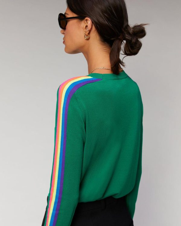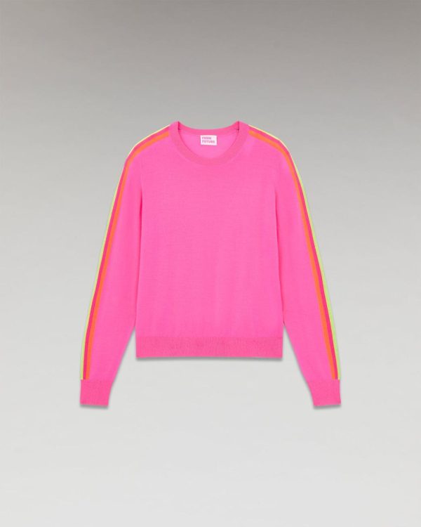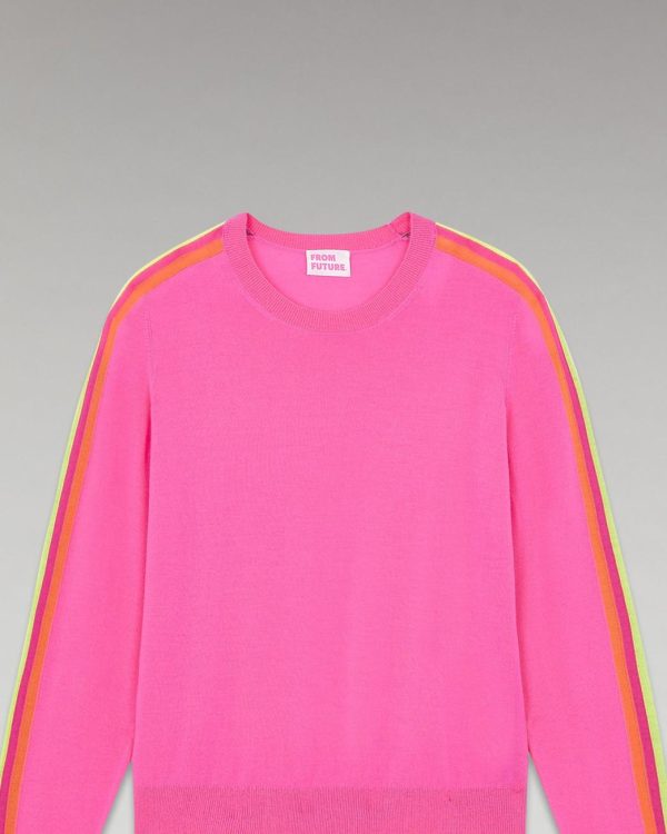 Signatures de l’allure From Future, des bandes multicolores contrastées se dévoilent sur ce pull en laine mérinos, muni d’un col rond et de manches longues.