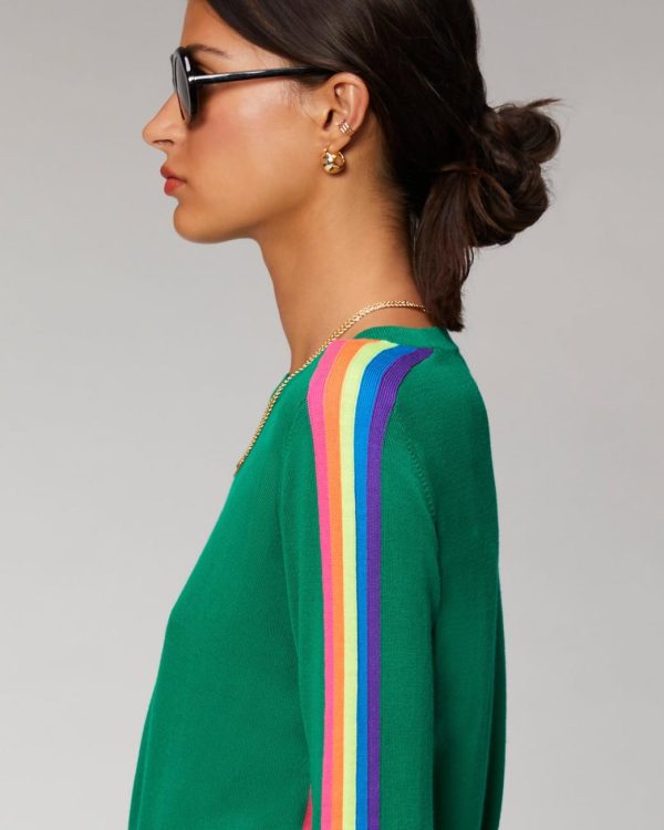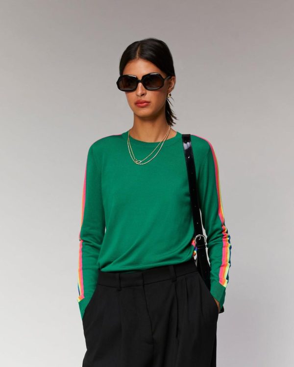 Signatures de l’allure From Future, des bandes multicolores contrastées se dévoilent sur ce pull en laine mérinos, muni d’un col rond et de manches longues.