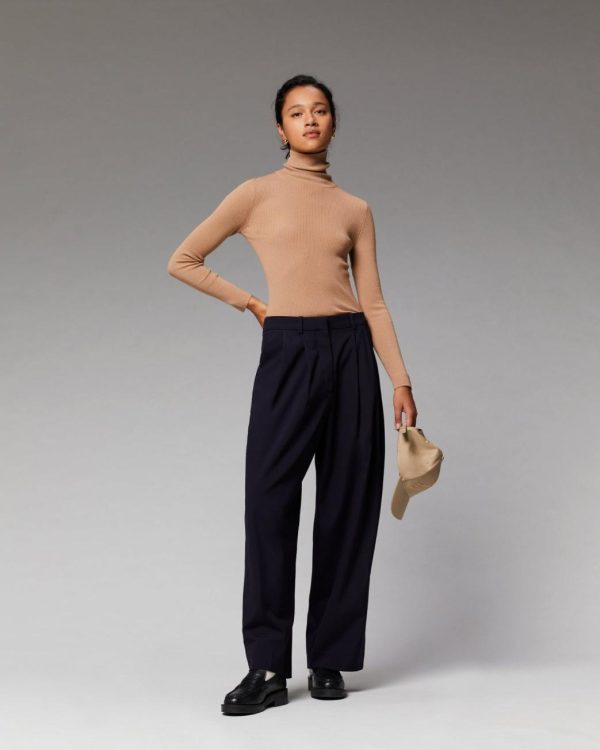 Pulls En Laine Mérinos | Femme FROM FUTURE Pull Col Roulé Basique Camel