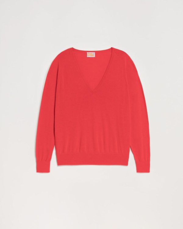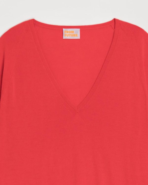 Pulls En Laine Mérinos | Femme FROM FUTURE Pull Col V Oversize Orange Fluo